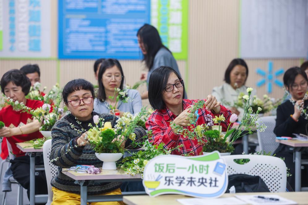 4月20日晚,浙江省杭州市临平区首家老年教育夜校“未央社”在东湖街道老年学校揭牌亮相。首批特色课程设置花艺扦插、婴幼儿辅食制作、老年美妆穿搭、科学膳食营养、短视频直播等,课程均安排在晚饭后的时段,每次1小时左右。