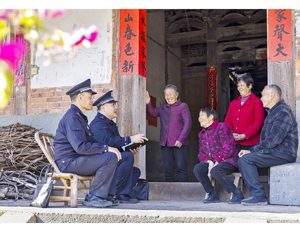 1月12日,福建省莆田市公安局涵江分局庄边派出所组织警力深入辖区开展入户走访工作,倾听民情民意。图为民警辅警与村民亲切交谈。……详细>>