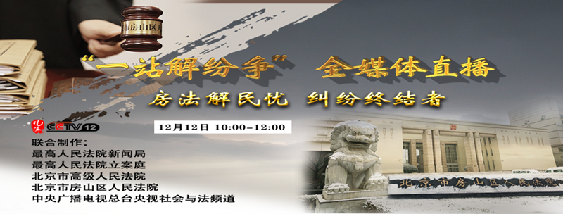 法治中国廉政网视讯(李佳芳):农民工讨薪如何立案?父子之间房屋居住权能否划割?交通事故医疗赔偿能否得到?房屋漏水社区居委会能否成功调解?你想知道的答案都在直播里!12月12日10:00,北京市房山区人民法院司法手段创新实践,一站式多元解纷、一站式诉讼服务,切实解民忧,做纠纷的终结者。“一站解纷争”全媒体网络直播等你来看!