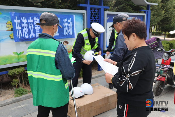 安全宣讲+赠送头盔,东港交警开展交通安全主题宣传