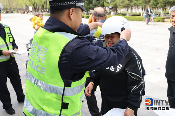 活动中,民警通过现场设置安全宣讲台、给骑电动自行车的老人现场赠送安全头盔、现场教学安全头盔的正确佩戴方法及讲解戴头盔与不戴头盔所带来的两种截然不同的后果等方式,引导广大群众时刻树立“安全带就是生命带”、“头盔就是安全盾”的意识,切实提高“知危险会避险、遵法守法安全出行”的能力。