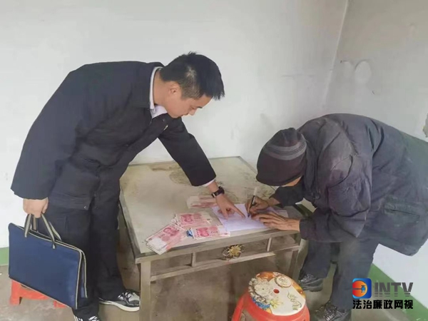 两天后,被执行人带着现金前来法庭,本想通知大爷前来领取案款,但考虑到大爷住在偏远山上,下着雨也不安全,甘溪法庭执行干警本着“自己多跑路,群众少跑腿”的办案宗旨,决定将案款亲自送到大爷手上,让大爷能安心的过一个温暖的冬天,于是,就出现了开头的那一幕。