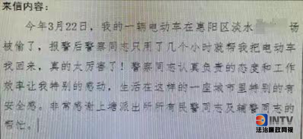 惠州惠阳警方迅速破案为民挽损 群众致信“平安厅”信箱点赞表扬