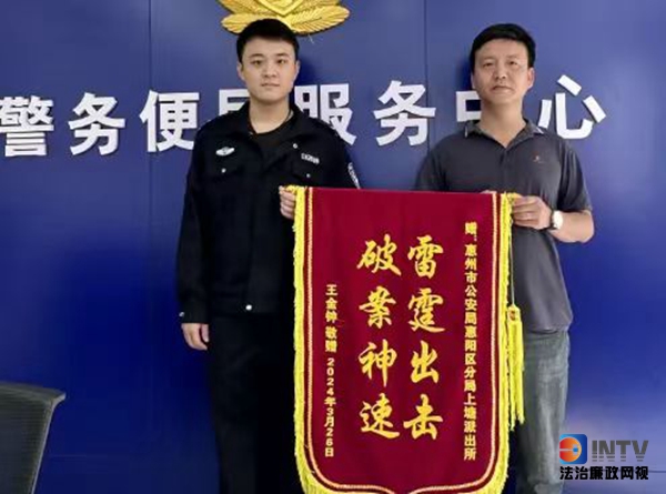 这起案件前后不到三小时就被迅速破获,让王先生深感震撼。26日,他将一面印有“雷霆出击,破案神速”的锦旗送到上塘派出所,向办案民警表达了由衷谢意。在27日得知有“平安厅”厅长信箱这一渠道时,他更是在百忙之中抽空写信。虽是寥寥数语,字里行间感激之情却跃于信上,他还在信中写“生活在这样的一座城市里特别的有安全感”。