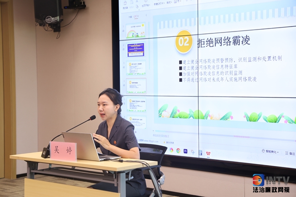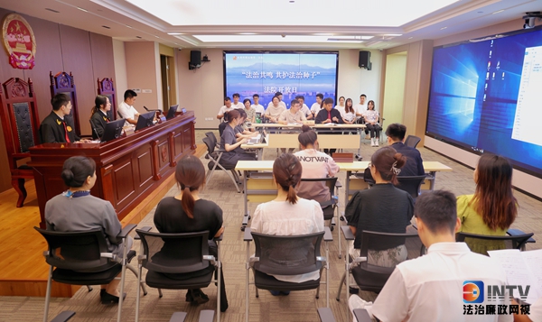 模拟法庭结束后,成都互联网法庭以“厚植爱国主义情怀”“法治与教育”,以及“未成年人保护”等主题开展了普法宣传及座谈交流。