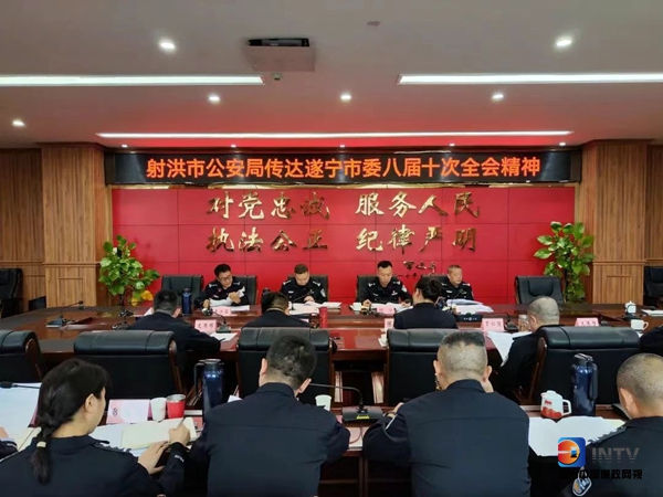 11月4日,射洪市公安局召开专题会议传达学习遂宁市委八届十次全会精神。结合公安工作实际,研究贯彻落实意见。会议由副市长、市公安局局长唐锐主持,在家局领导、局属各部门主要负责人参加会议。