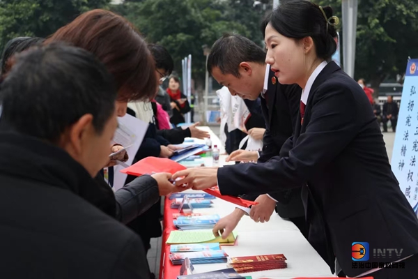 同样组织开展宪法宣传活动的还有雁江区检察院,该院检察干警在雁江区建设路二段附近的广场悬挂起横幅,热情地向过往市民普及宪法知识,解答法律疑问,让宪法真正走进群众心中。