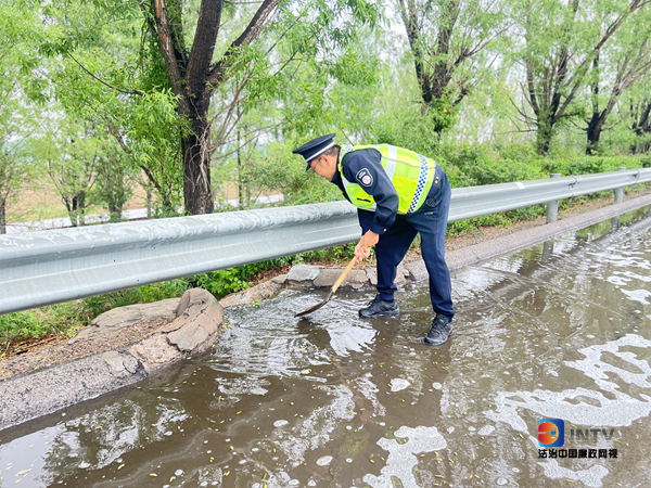 面对极端天气考验,路网三中队迅速响应,全员出动开展雨中道路安全专项巡查行动,用责任与担当守护群众平安出行路。巡查人员化身"道路守护者",对辖区路段、桥梁泄水孔及边沟展开"地毯式"排查。他们俯身查看每一处排水口,用工具仔细清理枯枝落叶、淤泥杂物,不放过任何一个堵塞隐患点。雨水打湿了衣衫,泥泞沾满了裤脚,却丝毫没有影响他们专注工作的状态。此次巡查中,路网三中队秉持"发现即处置"原则,对排查出的淤堵问题立即进行清理疏通,确保排水系统高效运转。他们深知,一个小小的泄水孔畅通与否,都关乎着道路的安全与顺畅,关乎着群众的生命财产安全。