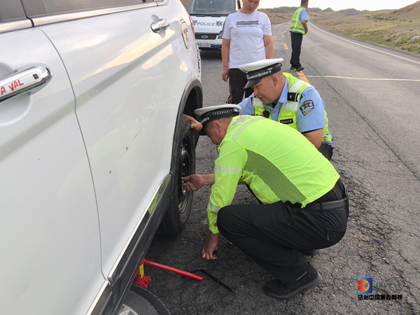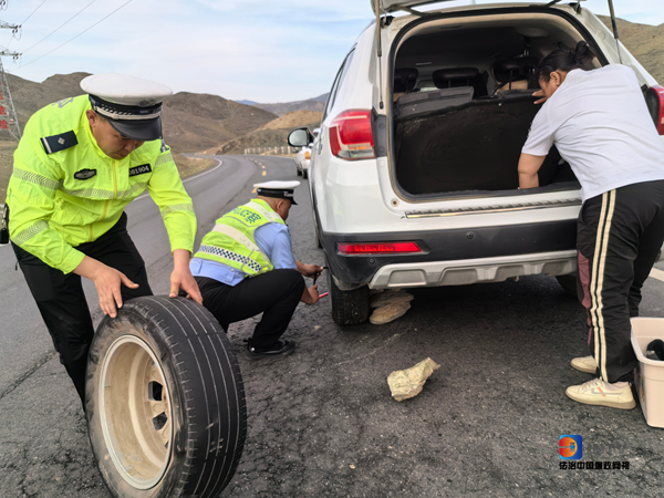 青河公安交警巡逻途中帮爆胎车辆换备胎 及时消除道路安全隐患