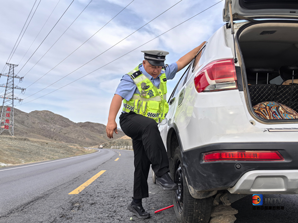 本网讯:6月3日19时许,青河县公安局喀依尔恒交警中队民警在开展巡逻时,在省道228线34公里处发现一辆机动车停靠路边,车辆左后轮爆胎。女驾驶人因缺乏换胎经验,正焦急地在车旁徘徊。
