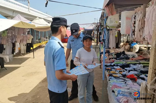 7月14日,借东马坊村赶集人流汇聚之机,高桥派出所民警把“安全普法课”搬到集市上,手持宣传资料,穿行于熙攘人群。