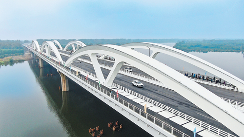 紧盯京津冀交通一体化建设中的“卡点”问题,北京、河北两地纪委监委驻交通运输部门纪检监察组联动监督打通梗阻,确保厂通路潮白河大桥项目如期完工投用。图为贯通河北大厂县和北京城市副中心的厂通路潮白河大桥。北京市交通委
