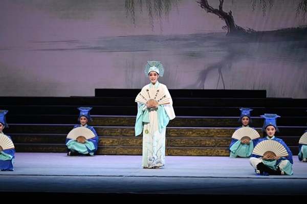 图为浙江小百花越剧院演员陈丽君在晚会上饰演“梁山伯”。(浙江省文化广电和旅游厅供图)