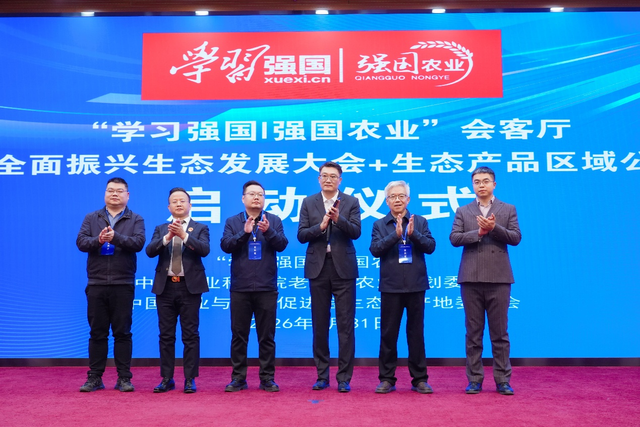 大会为“学习强国|强国农业”会客厅暨乡村全面振兴生态发展大会+生态产品区域公用品牌举行了启动仪式。“学习强国▏强国农业”平台是贯彻2025年4月7日,中共中央、国务院《加快建设农业强国规划(2024—2035年)》,“强国必先强农,农强方能国强”的政策要求启动的助农工作。“学习强国▏强国农业”运营合作方总裁崔海洋,中国农业科学院老科协农业规划委员会会长孙建等参加了启动仪式。