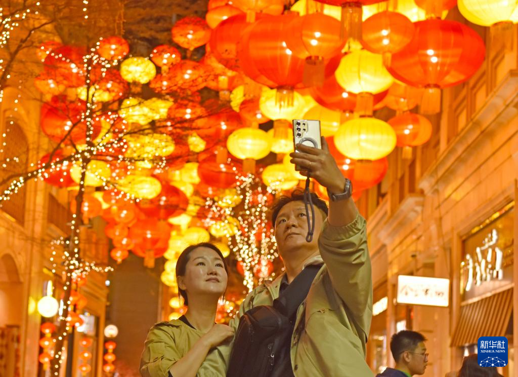 春节临近,香港利东街挂满大红灯笼,一派喜庆气氛。