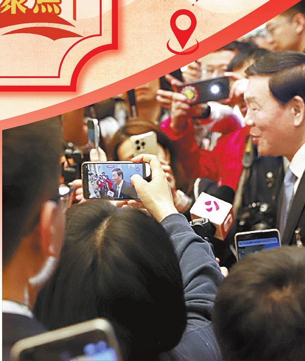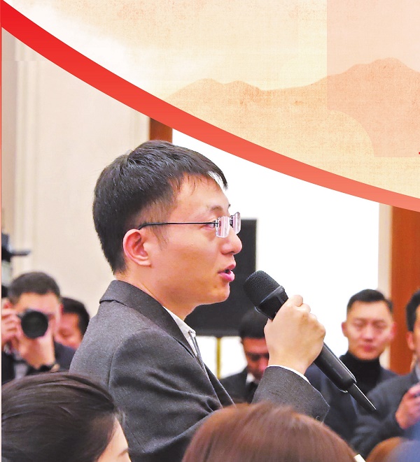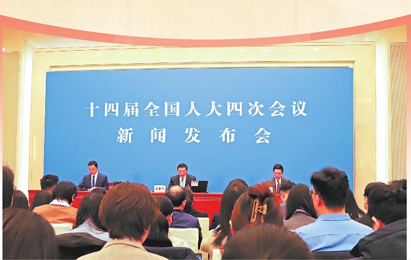 图①:十四届全国人大四次会议新闻发布会3月4日在北京人民大会堂新闻发布厅举行。图为提问环节,法治日报记者就立法工作情况提问。