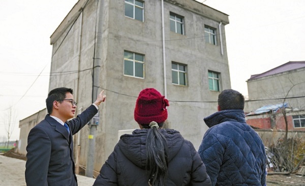 图为安徽省临泉县人民法院宋集人民法庭法官范昊(左)实地查看监控摄像头。 刘飞飞 摄