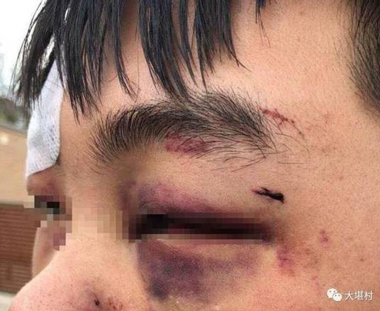 被殴打学生眼眶淤青(图片来自微信公众号“大堪村”)